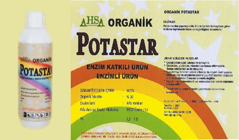 Potasyum büyüme, gelişme ve metabolik işlemler üzerinde etkilidir ve bitkilerin hastalıklara karşı direnç kazanmasını da sağlar. Buna göre AHSA ORGANİK bitkilerdeki bütün bu olumsuzlukları göz önüne alarak, bu olumsuzlukları ortadan kaldıracak Enzim İçerikli Organik POTASTAR'ı doğa şartlarına uygun bir şekide imal etmiştir. Organik aktif bileşiklerin karışımı yapılarak, itina ile üretilmiştir.